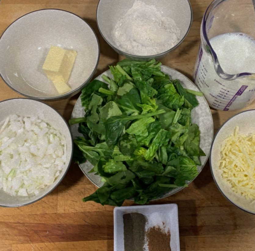 1.- Coem els espinacs en una paella, els trossegem i reservem.