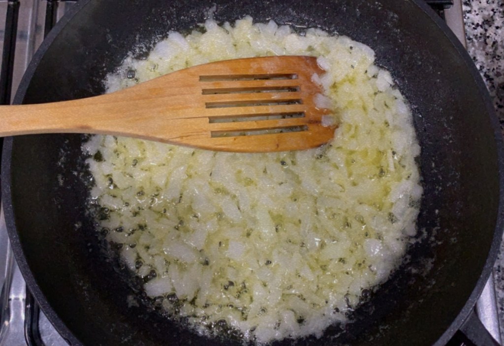 2.- Un cop desfeta, hi afegim la ceba fins que es dori.