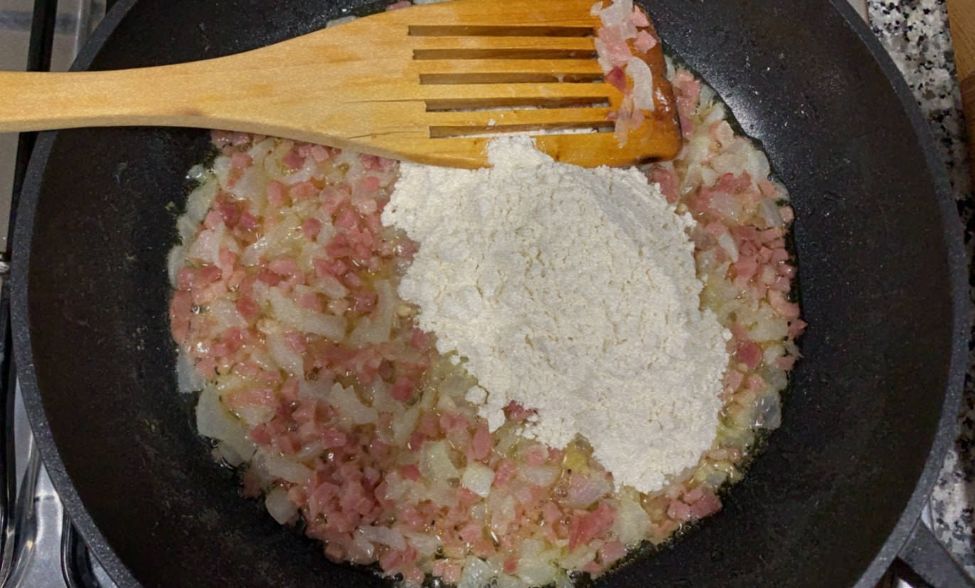5.- Un cop passin 4 minuts, hi afegim la llet poc a poc fins que la massa espessi.