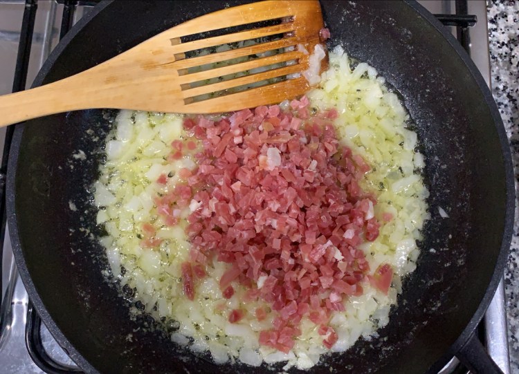 3.- Hi afegim el pernil i el deixem 1 minut aproximadament.