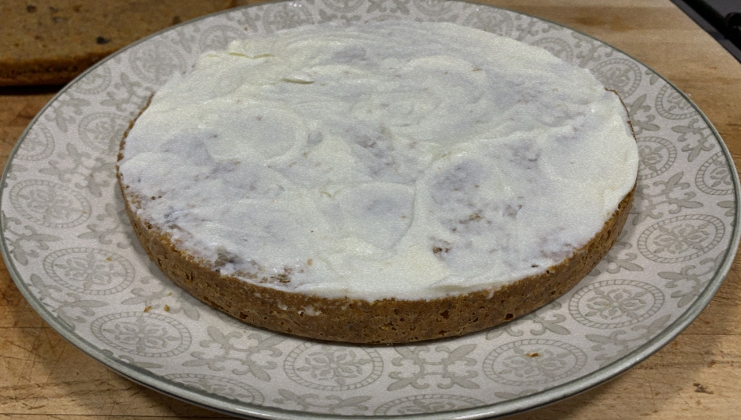 2.- Deixem refredar la cobertura a la nevera. Un cop tinguem el pastís ben fred, l’obrirem per la meitat, i el cobrirem amb la cobertura de formatge.