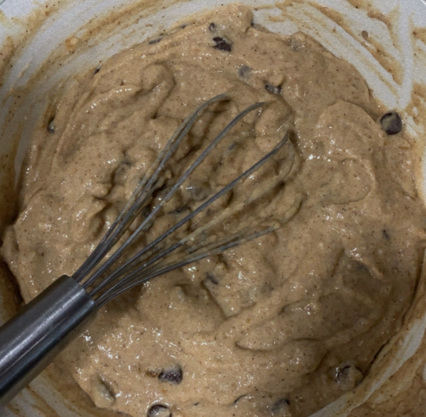 4.- Finalment, hi afegim la barreja de la farina i les gotes de xocolata.