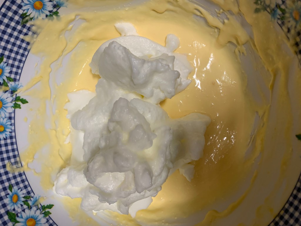 3.- Barregem amb una llengua de gat les clares a punt de neu juntament amb la massa anterior, amb compte que no es trenquin.