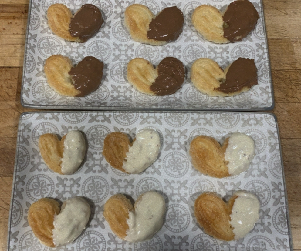 10.- Un cop estiguin fredes, les untarem (al gust) amb les dues xocolates, i esperarem a que es refredin per a servir.