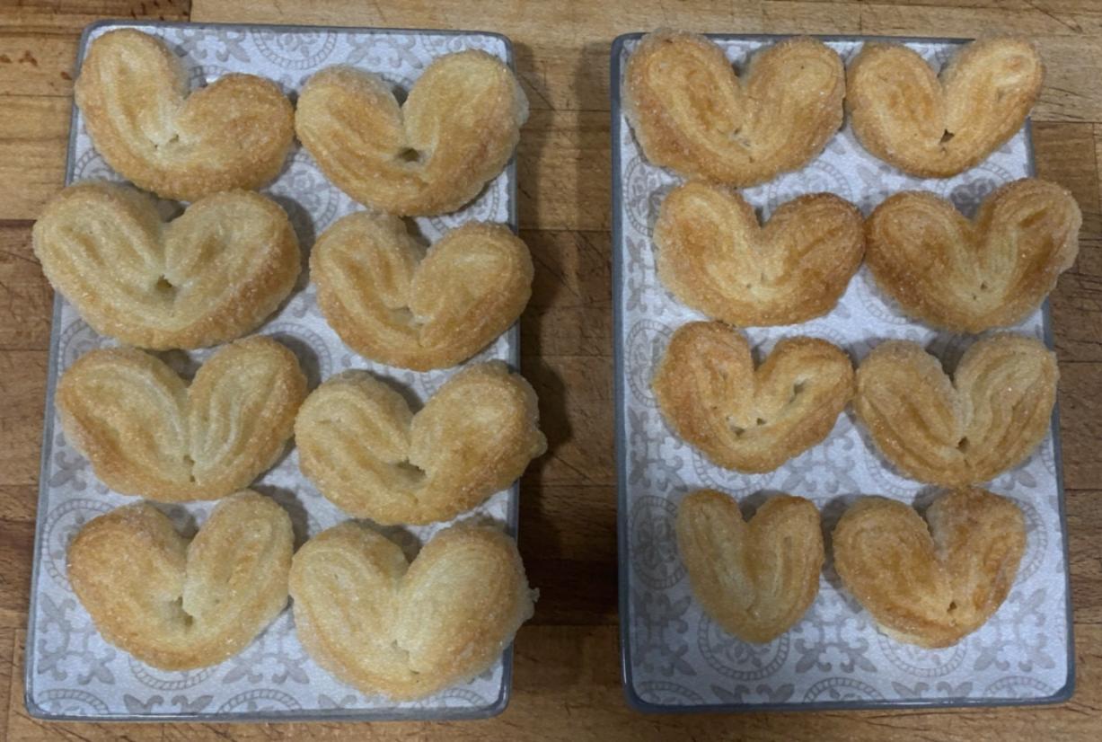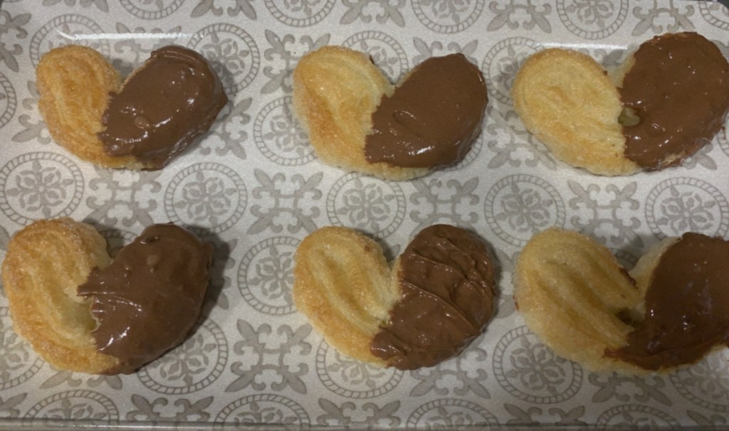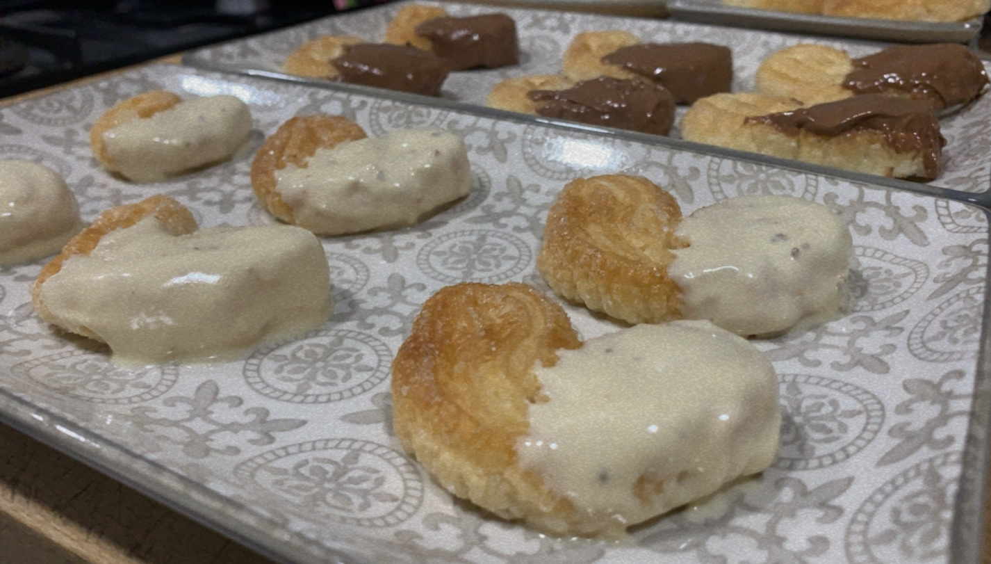 9.- Deixarem refredar les palmeres durant 15 minuts, estona en la qual desfarem les dues xocolates al microones, en intèrvals de 30 segons per evitar que es cremin.