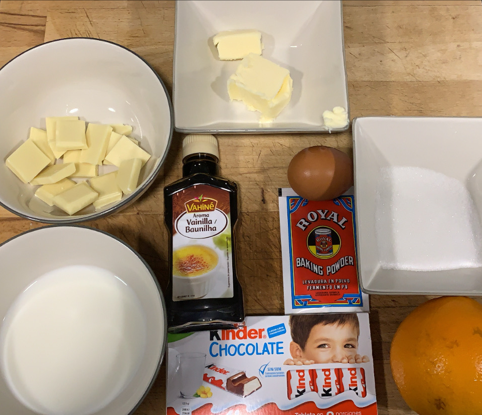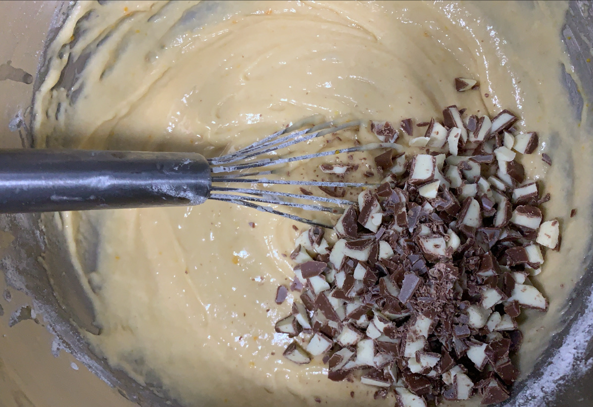 5.- Ara, només ens quedarà afegir-hi la ratlladura de taronja i les barretes kinder bueno trossejades molt petites. Jo n’he triturat 7, i l’última l’he reservat per a decorar.