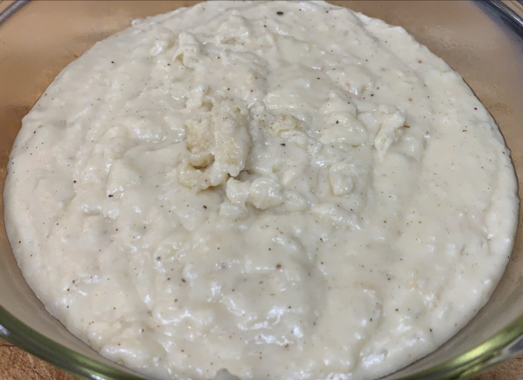 5.- Un cop la massa estigui del tot espessa i no s’enganxi a la paella, afegirem sal al gust i retirarem del foc. Col·locarem la barreja en un bol coberta amb paper film i, un cop es refredi, la deixarem a la nevera unes 8 hores.