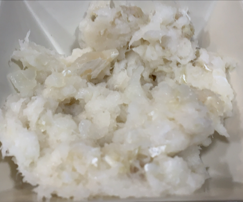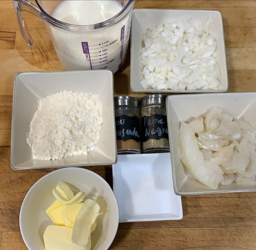 3.- Llavors, incorporem el bacallà triturat i el deixem uns 5 minuts perquè s’integri del tot.