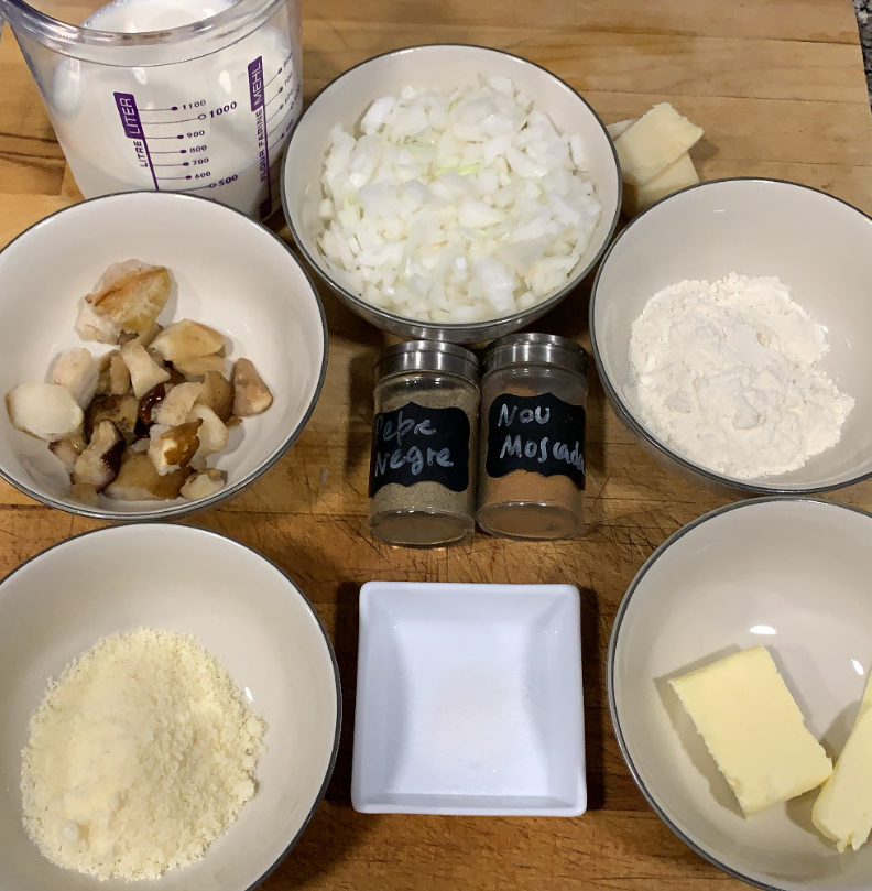 5.- Finalment, només en quedarà posar-hi el formatge parmesà, i afegir sal al gust. Un cop la massa estigui del tot espessa, retirem del foc i deixem reposar en un recipient cobert amb film transparent. Un cop la massa estigui a temperatura ambient, la deixem unes 8 hores a la nevera.