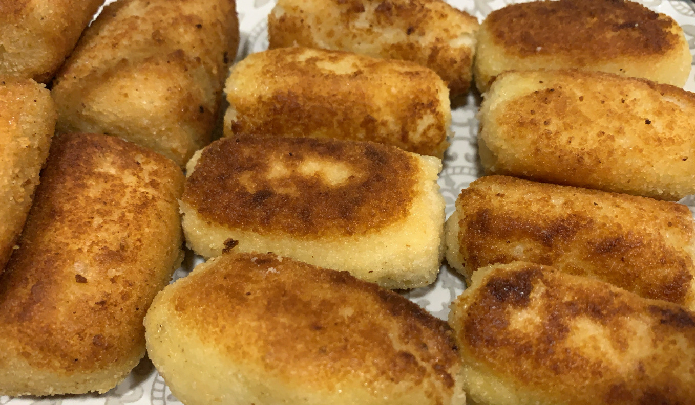 6.- Passada l’estona de repòs, donarem forma a les croquetes i les passarem per pa ratllat, ou i finalment pa ratllat.