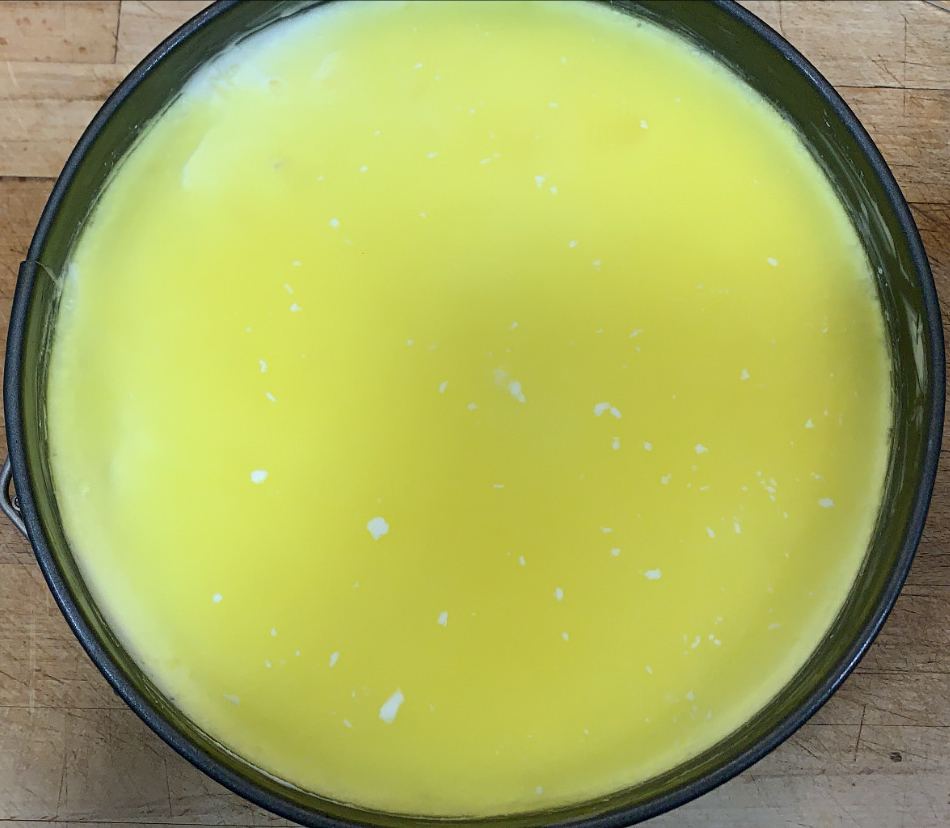 5.- Quan tinguem tots els ingredients ben integrats, els col·locarem amb molt de compte al motlle, fins que la barreja estigui ben plana i uniforme. Posarem el pastís al congelador, almenys unes 3 hores de repòs.
