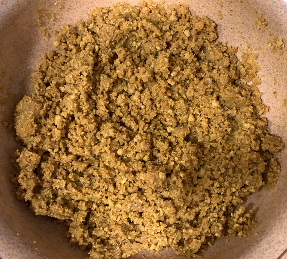 2.- Desfem la mantega al microones, en períodes de 30 segons, i la incorporem a les galetes triturades.