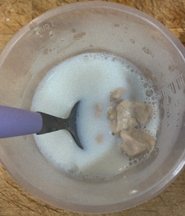1.- Barregem el iogurt amb la llet fins que s’incorporin.