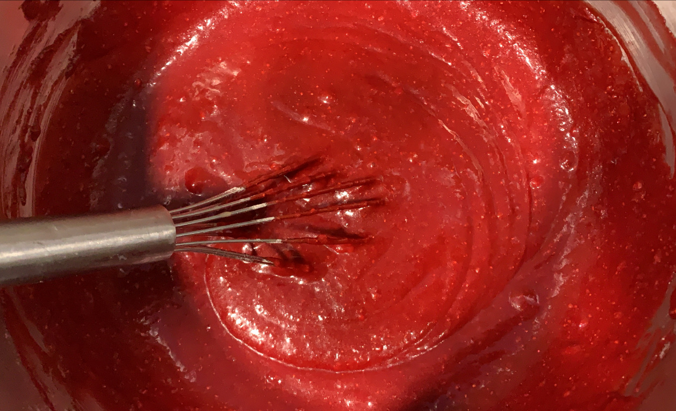 4.- Tornem a portar la mescla a foc baix i, sense deixar de remenar, esperem que arrenqui el bull. Llavors, començarà a espessar i, quan tingui la textura desitjada, retirem del foc.