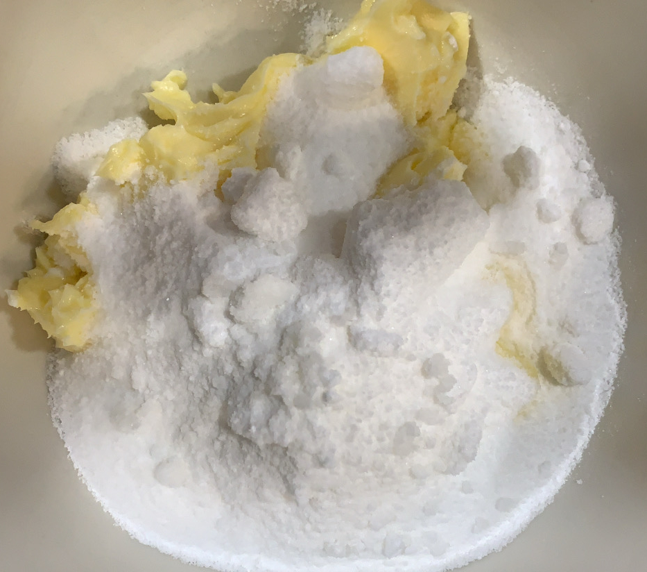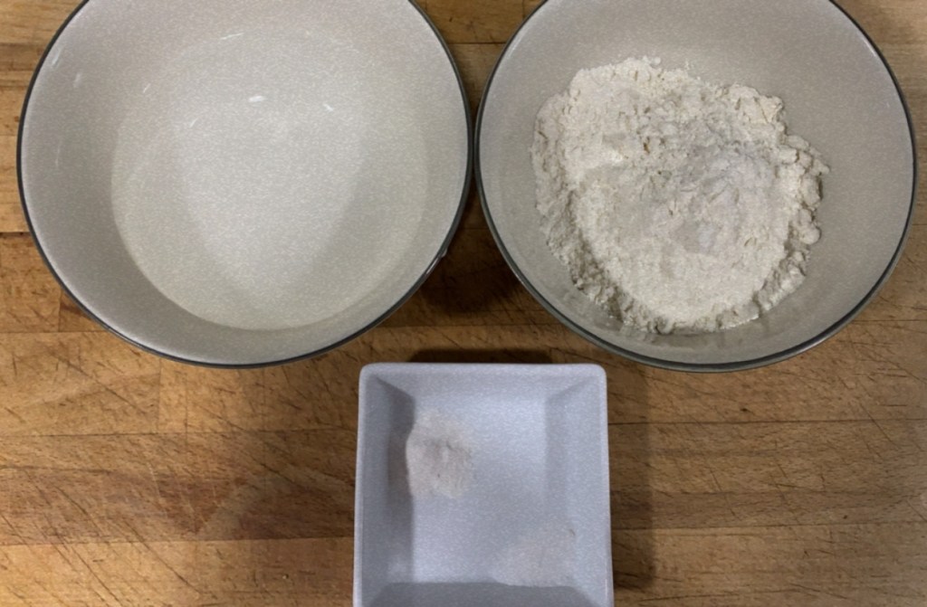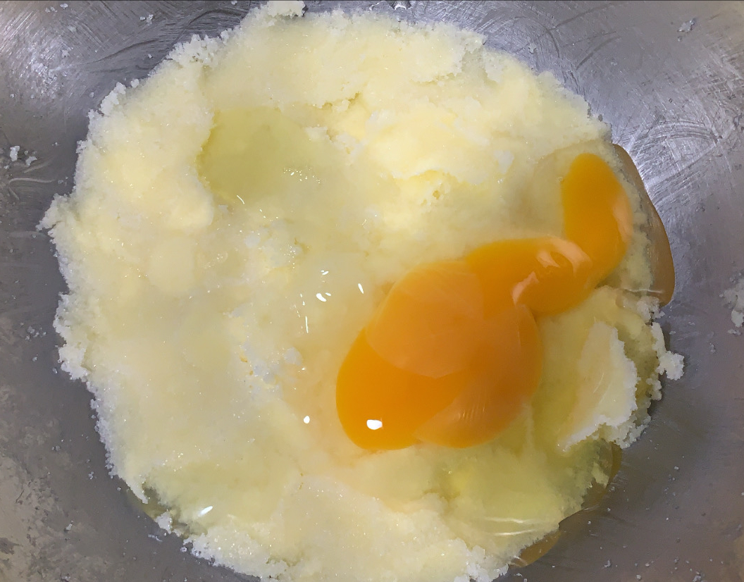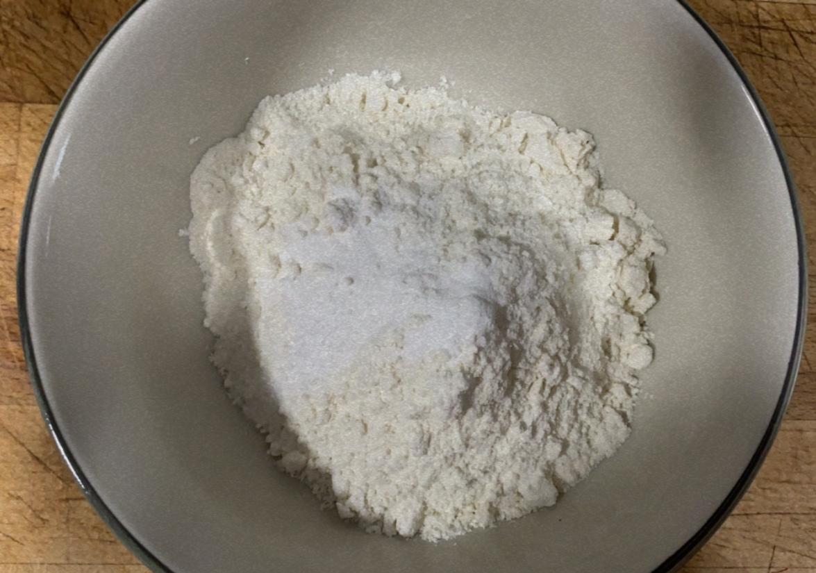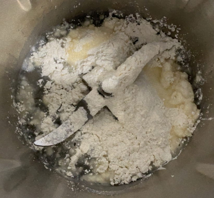 2.- En un bol, barregem la farina, midó de blat, sucre i rovells d’ou.